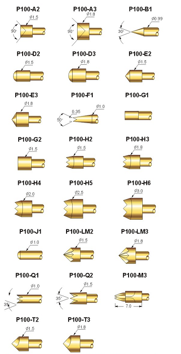 而針桿有兩種材質(zhì):其中一種是磷銅鍍鎳,另外一種是鈹銅(或SK4)進(jìn)行鍍金(或銠)