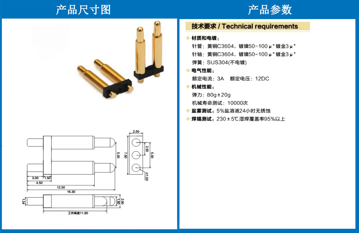 產(chǎn)品介紹:這個(gè)針通常用于智能手表,藍(lán)牙耳機(jī)上的有充電的功能,但是探針總體來說還是測(cè)試的