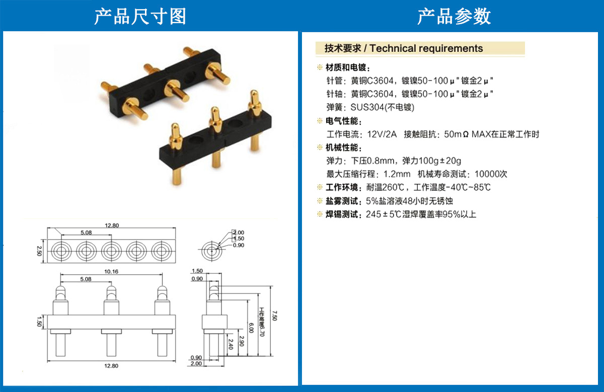 產(chǎn)品介紹:這個(gè)針通常用于智能手表,藍(lán)牙耳機(jī)上的有充電的功能,但是探針總體來(lái)說(shuō)還是測(cè)試的